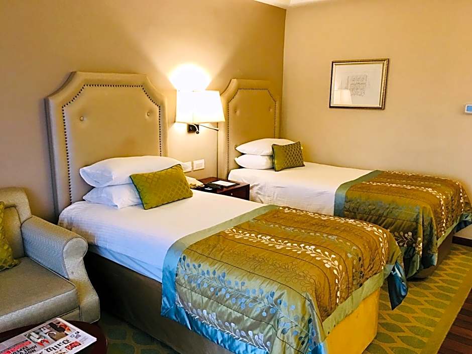 01Deluxe Room City Facing Twin Bed is 377 square feet and includes 2 single beds 80-130 width.